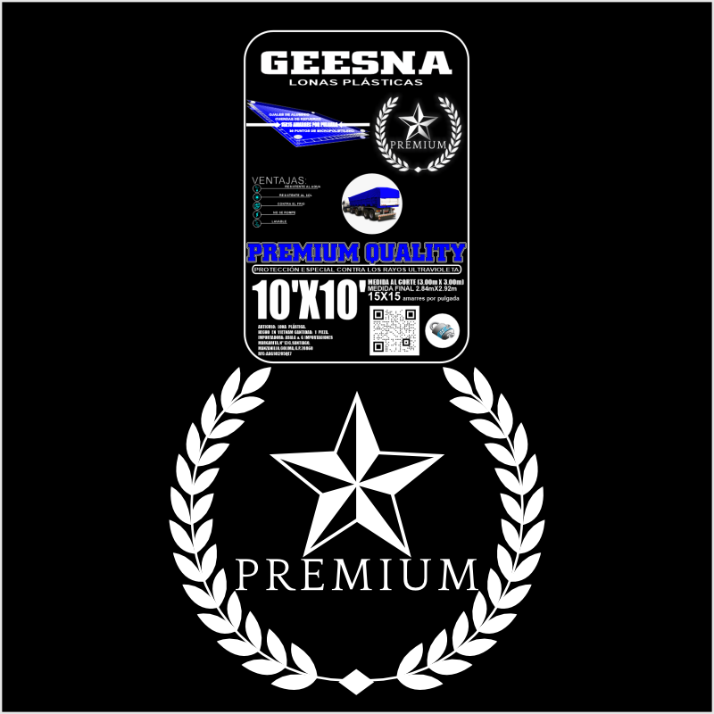 LONA PREMIUM AZUL/GRIS 40X50 FT 220 G 12.00X15.00 MTS GEESNA | 60680.